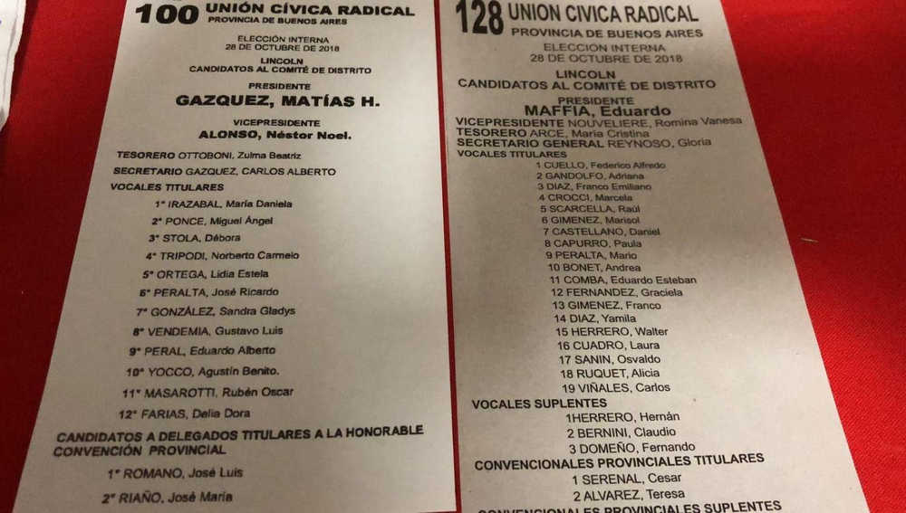 Sin acuerdo en la Unión Cívica Radical (UCR) en Lincoln y, al cierre del plazo para presentar candidaturas, habrá dos listas que disputarán el Comité del distrito.