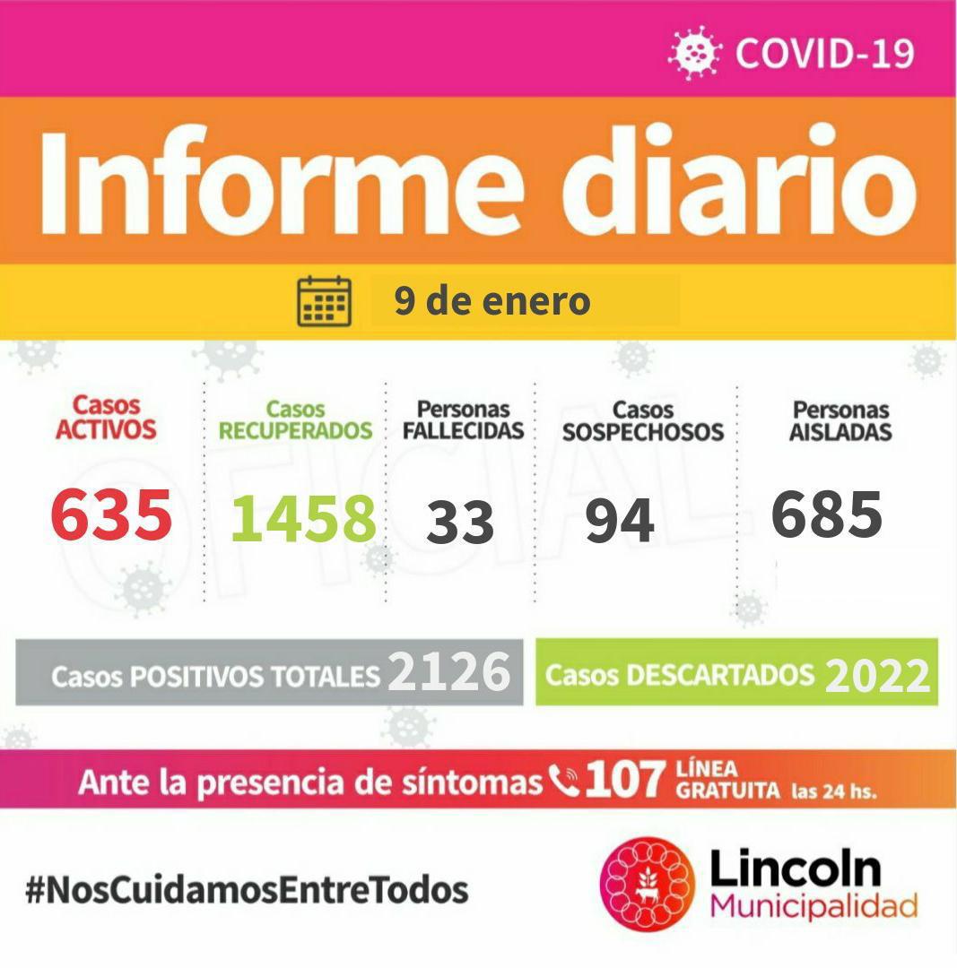 En total, se registran 635 Casos Activos, viviendo 560 en Lincoln, 5 en Arenaza, 40 en Roberts, 12 en Bayauca, 6 en El Triunfo, 4 en Pasteur, 1 en Bermúdez, 4 en Martínez de Hoz y 3 en Las Toscas.
