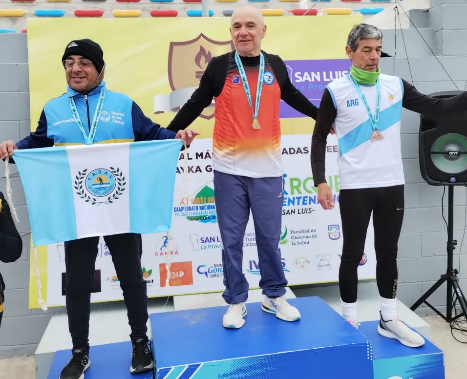 El profesor Gustavo Vendemia compitió una vez más y esta vez fue en San Luis, donde finalizó en segundo lugar en el triatlón de velocidad y fue el mejor en el Meeting que tuvo su especialidad, los 100 metros llanos y el salto en largo donde triunfó y se consagró campeón con 67 años en la categoría que incluye a atletas de 65 a 69 años.