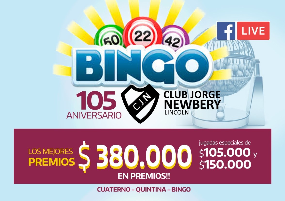 En el marco de su 105 aniversario, el Cine Club Jorge Newbery lanza un Bingo con importantes premios, con el objetivo de mantener las instalaciones del club en este contexto de pandemia. El sorteo se realizará el domingo 20 de septiembre a las 20 hs por el Facebook del Club Jorge Newbery Lincoln: https://www.facebook.com/clubjorgenewberylincoln