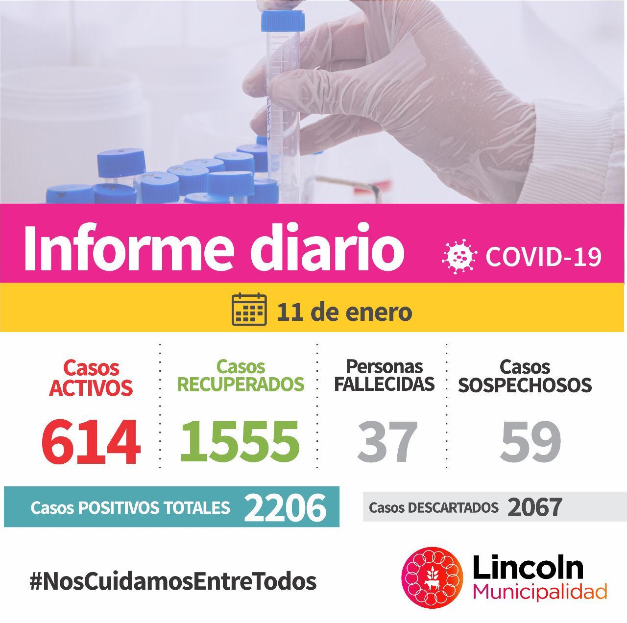 El reporte de este lunes 11 de enero indicó que se registraron 62 casos activos: 34 por laboratorio de HML, 4 por laboratorio privado y 24 por criterio clínico epidemiológico. Se trata de 55 personas de Lincoln, 1 de Roberts, 4 Bayauca, 1 de Martínez de Hoz y 1 de El Triunfo.