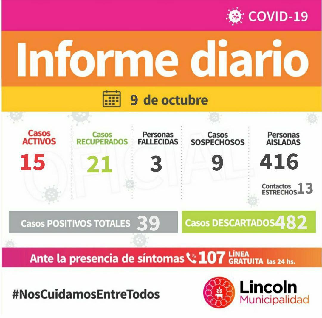 A su vez, se registraron 2 nuevos casos activos. Se trata de 2 personas residentes en Lincoln.