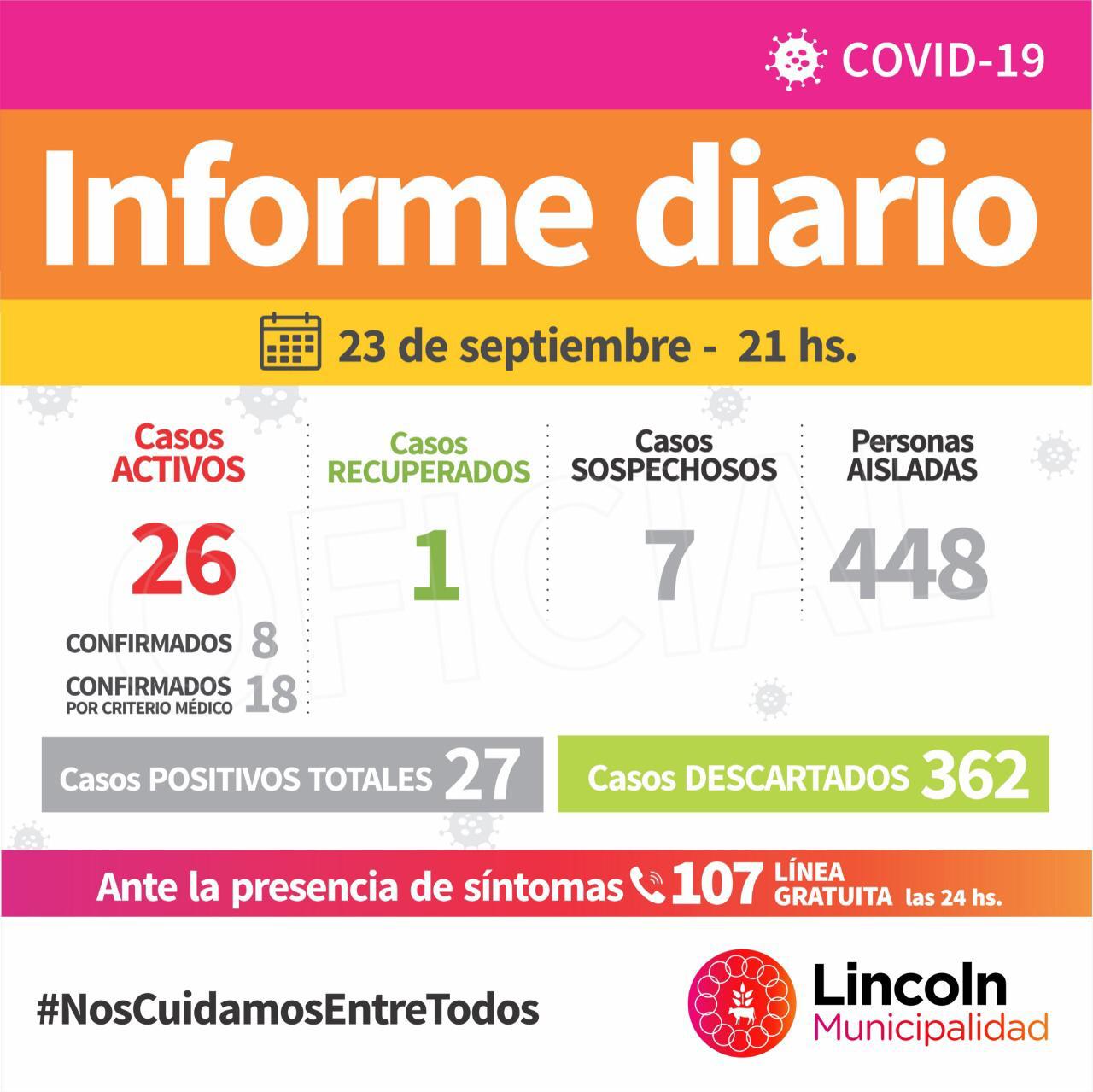 👉 A la fecha se registran 26 Casos Activos de los cuales 8 son confirmados por Hisopado Positivo y 18 por Criterio Médico.