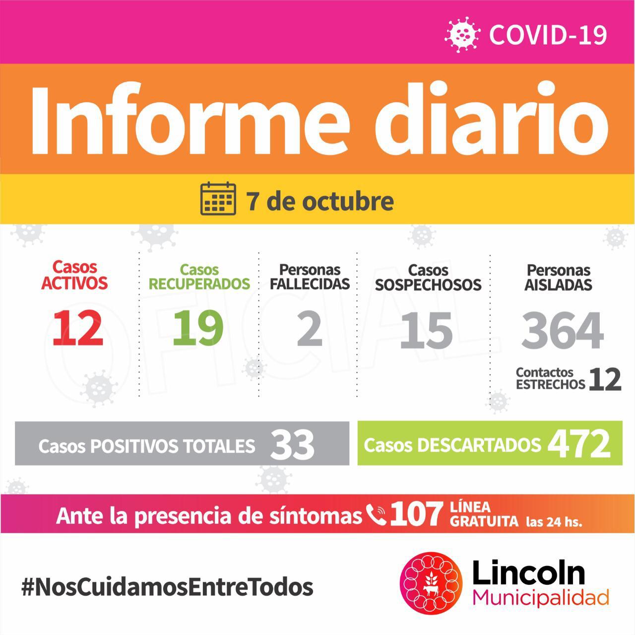 Por otra parte, a la fecha, se contabilizan 12 Casos Activos, 7 de los cuales residen en Lincoln, 4 en Roberts, y 1 en Pasteur.